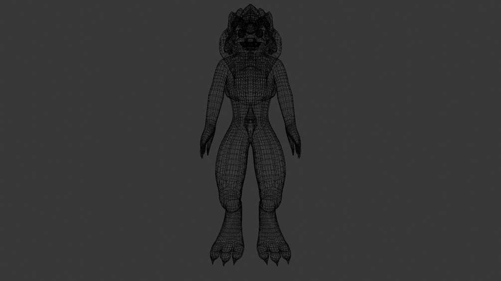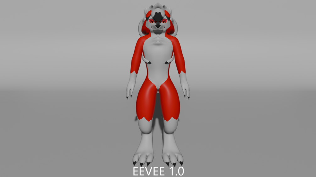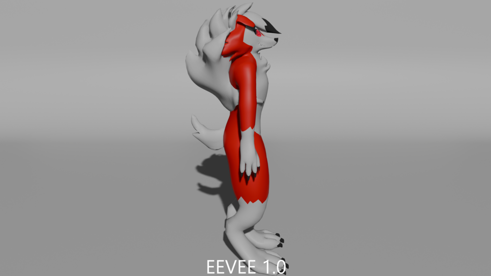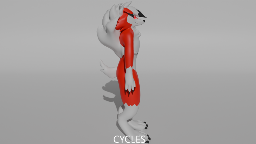 This is my attempt at a Lycanroc model, I gave him a simple IK rig, eye controls (blinking, eye dilation, look direction), simple shapekeys (hide teeth, smile, sad), and a very simple texture set. In fact, there are no textures, everything is procedural and defined by his geometry over a texturemap, seeing that it's a fairly simple model. I'll see if and when I can improve on the model, but for now, I would say it's good enough to use for most basic use cases.